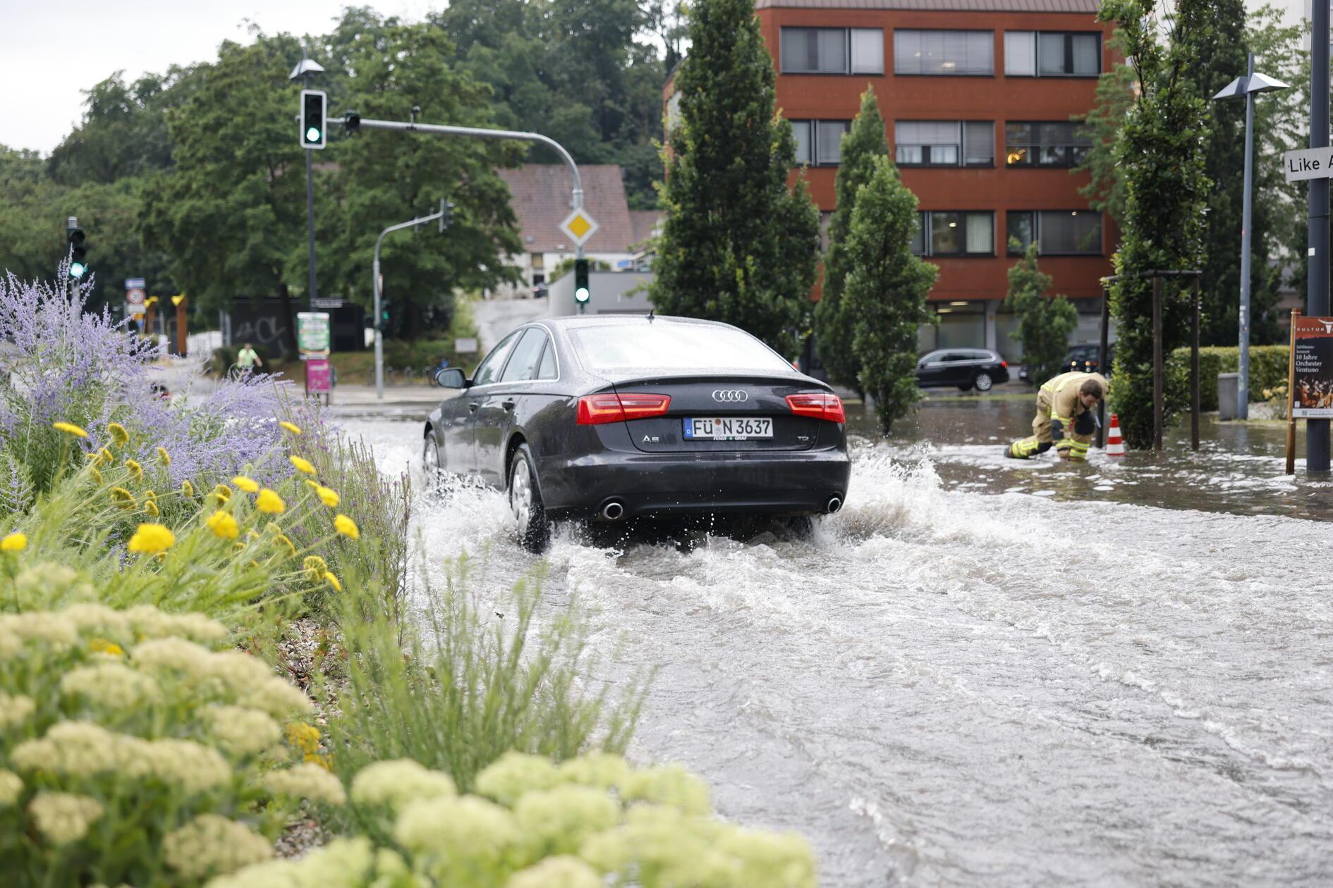 1/10 - An der Fürther Billinganlage staute sich das Wasser auf den Straßen. © NEWS5 / David Oßwald/NEWS5