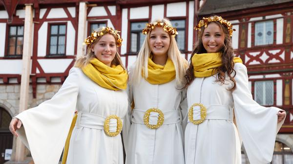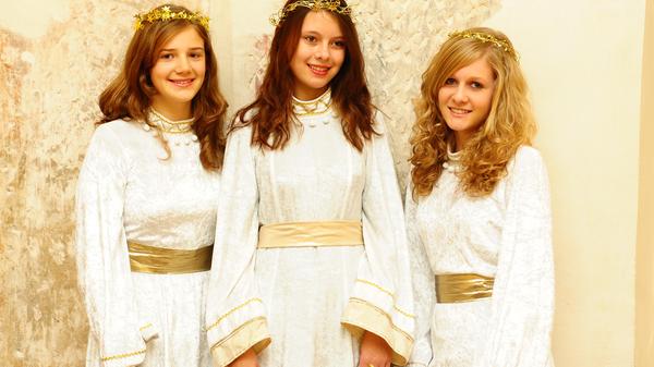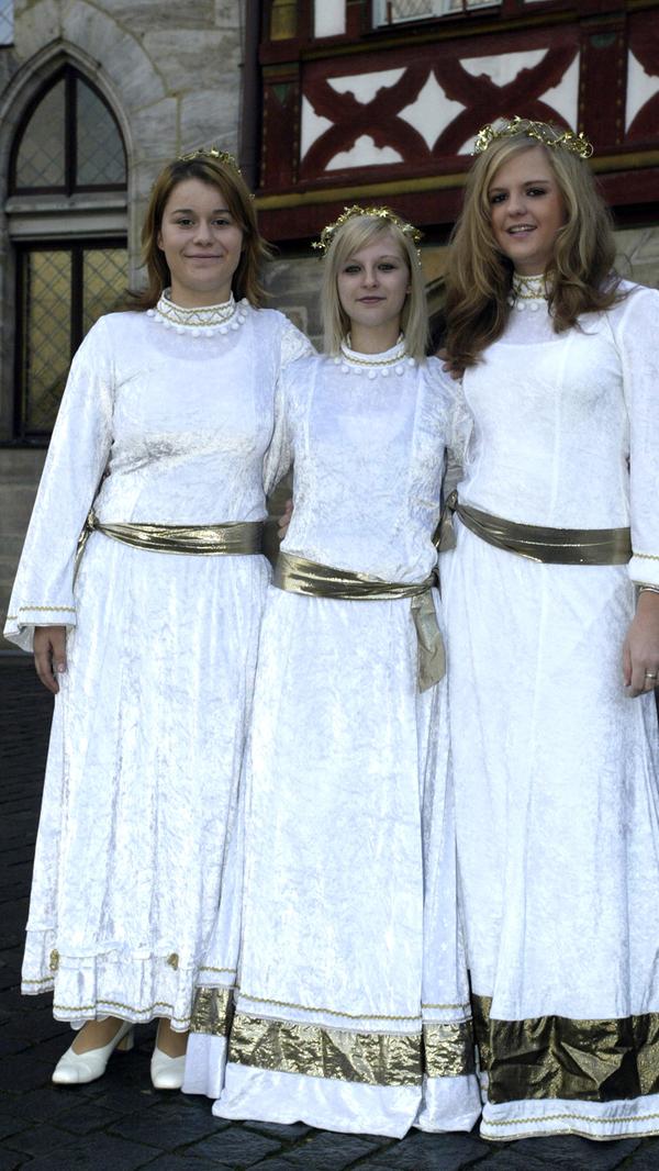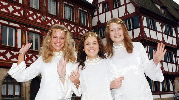 3/21 - Verena Schmidt (21), Nelli Böker (18), Jule Müller (18) waren die drei neuen Forchheimer Weihnachtsengel 2023. © Stadt Forchheim